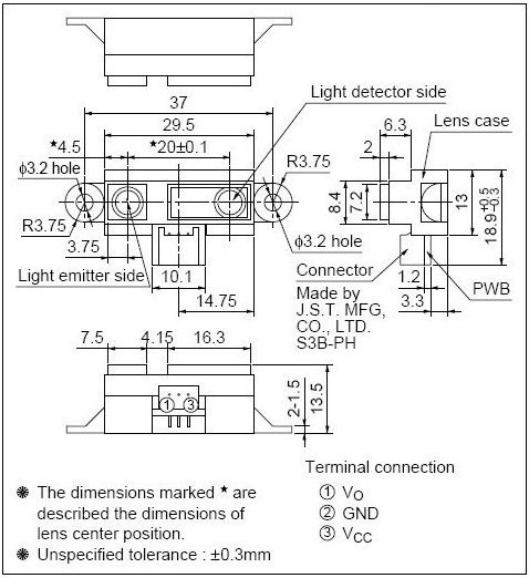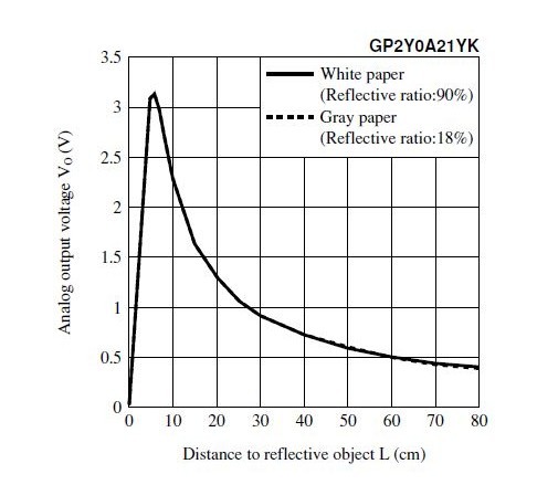 - Distance output type (analog voltage) : GP2Y0A21YK