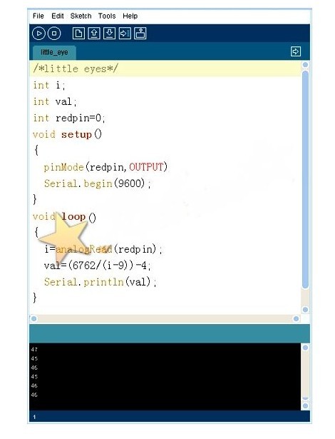 Arduino take six channel 10 ADC with itself, so we can directly connect the GP2Y0A21YK0F sensor with Arduino analog interface, and read the feedback value of this sensor.