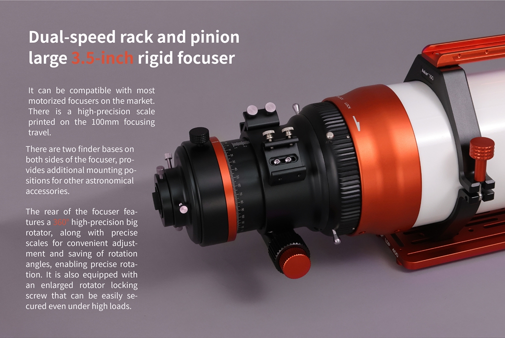 - Objective lens: Triplet air-spaced APO (including one ED glass)