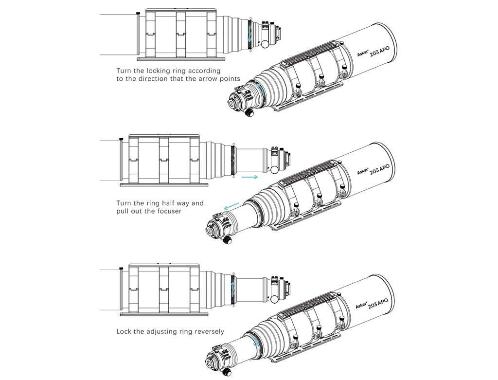 - It is worth mentioning that the rear lens tube of the 203APO has an integrated retractable design. We strengthen the overall stability and ensure that the optical axis will not be affected when the lens tube is stretched, thus guaranteeing the quality of the image. The retractable part also features a rudder-type locking ring that makes it easy to loosen or tighten.