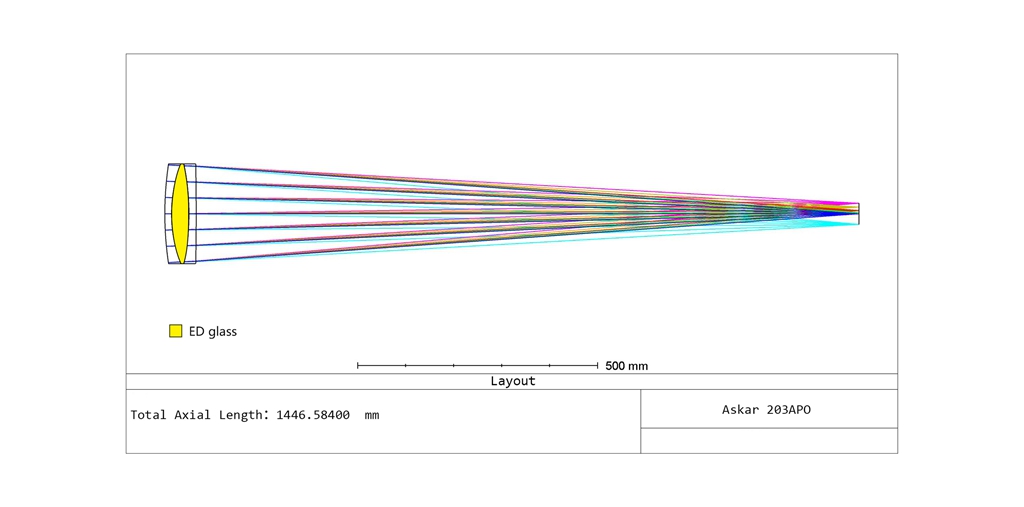 - The 203APO adopts a triplet air-spaced APO lens design, including one piece of ED glass.