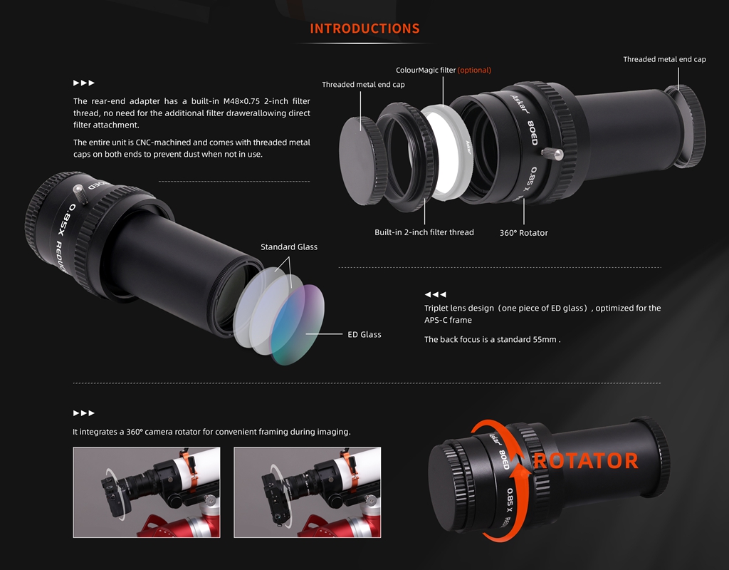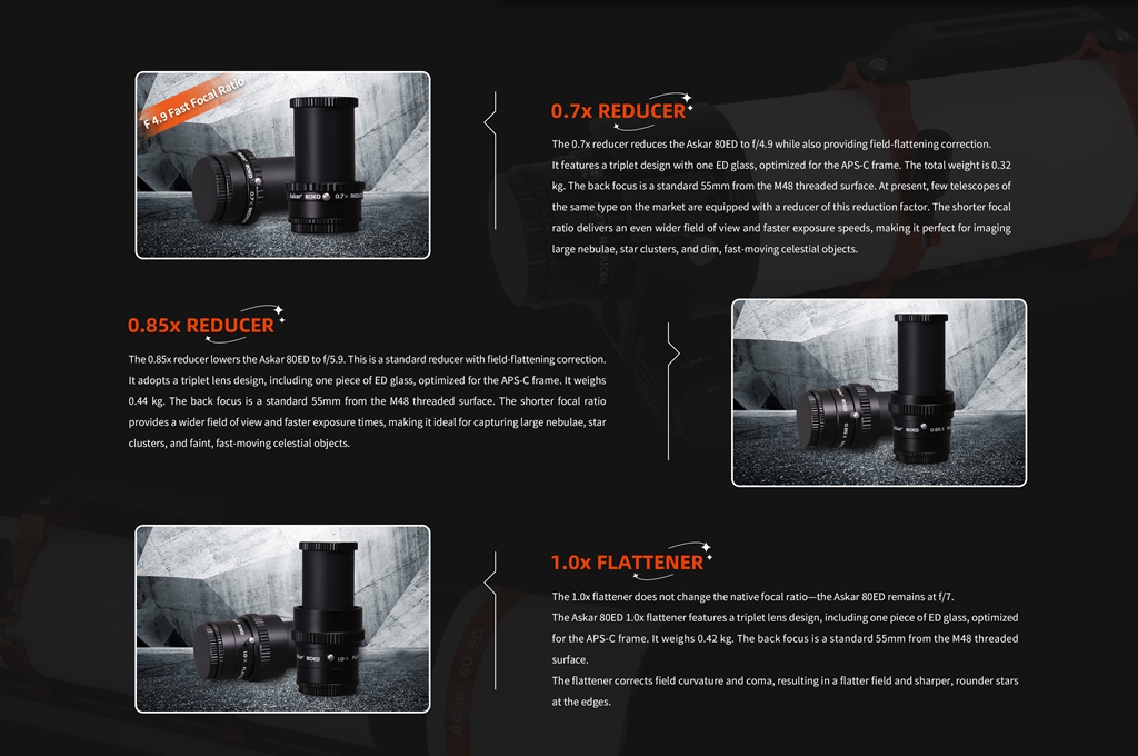 Askar F4.9 0.7x Full-frame Reducer Professional Astronomical Accessory Dedicated for 80ED Astrograph