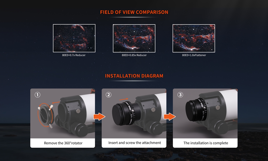 - (After attaching) 80ED Focal ratio: f/4.9