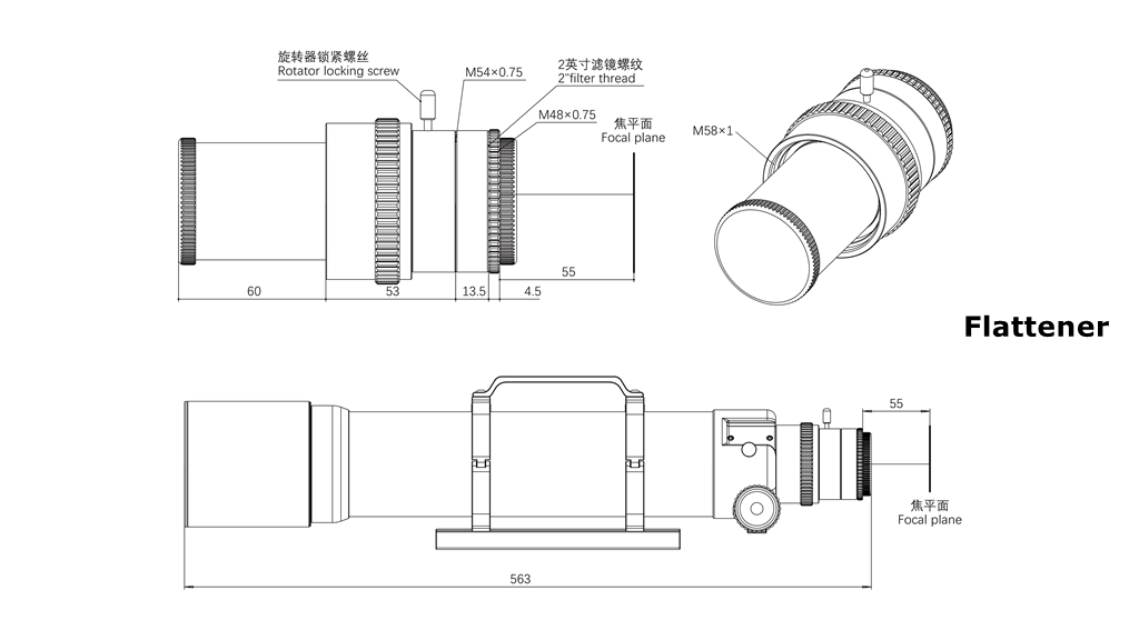 - Rear-end thread type: M54x0.75; M48x0.75 (M48x0.75 filter thread inside)
