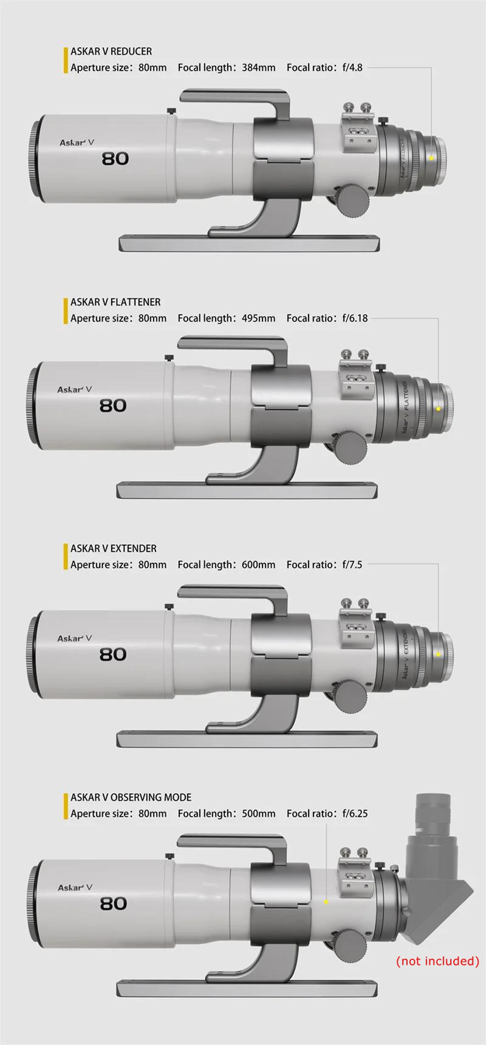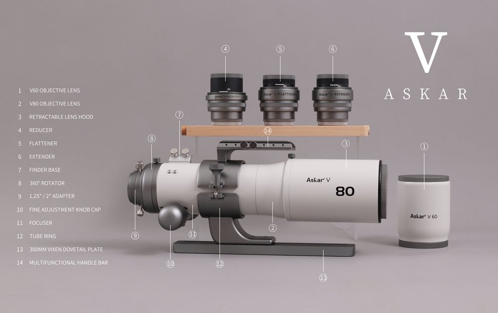 Askar V Professional Astronomical Telescope 60/80mm Double Objective Lens with Reducer/Extender