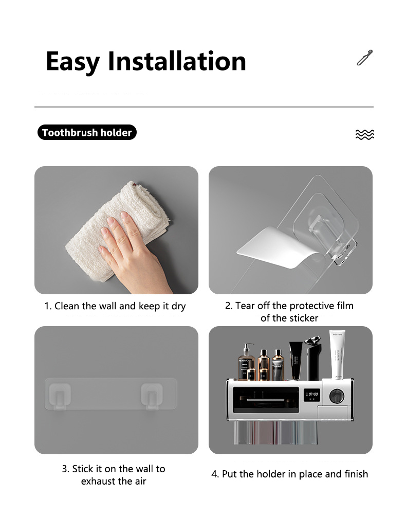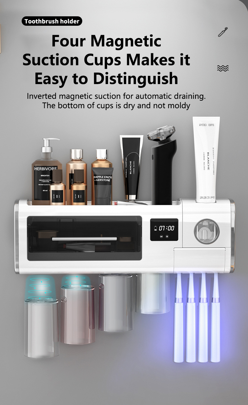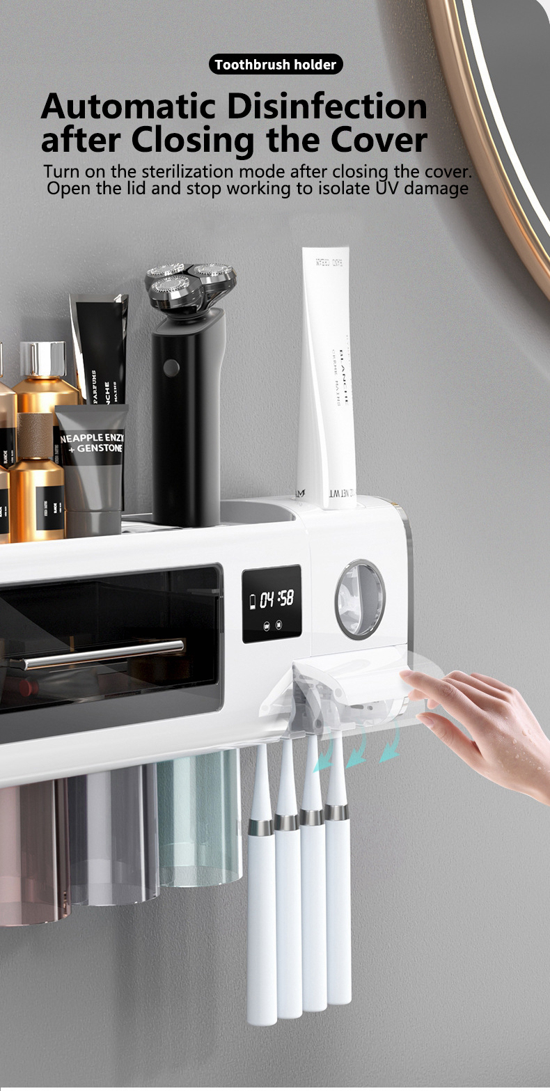 Automatic Toothpaste Dispenser Toothbrush Holder Disinfection Toothbrush Organizer Adhesive Type