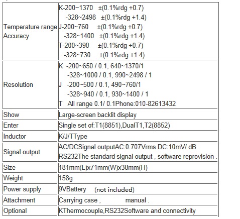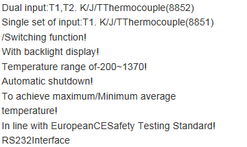 AZ-8852 Dual Input K J T Type Thermocouple Thermometer Two Channel Temperature Measure