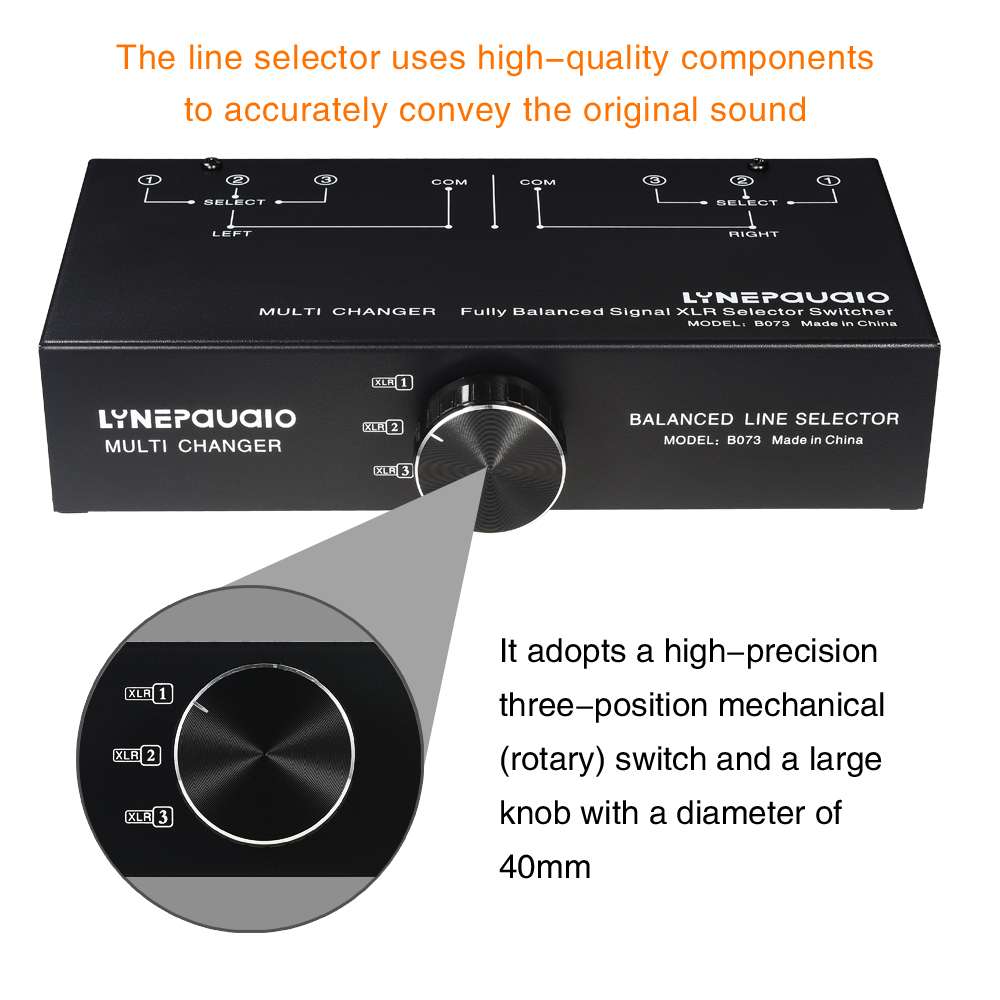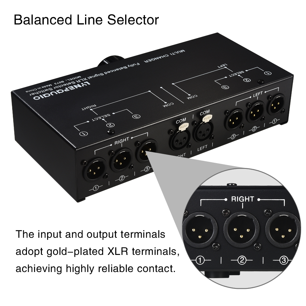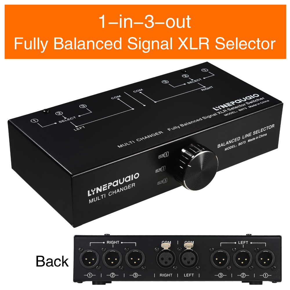 B073 1-IN 3-OUT Audio Switch Fully Balanced XLR Audio Source Signal Selector Passive Stereo Selector