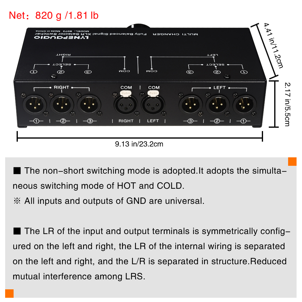 - The input and output terminals adopt gold-plated XLR terminals, achieving highly reliable contact.