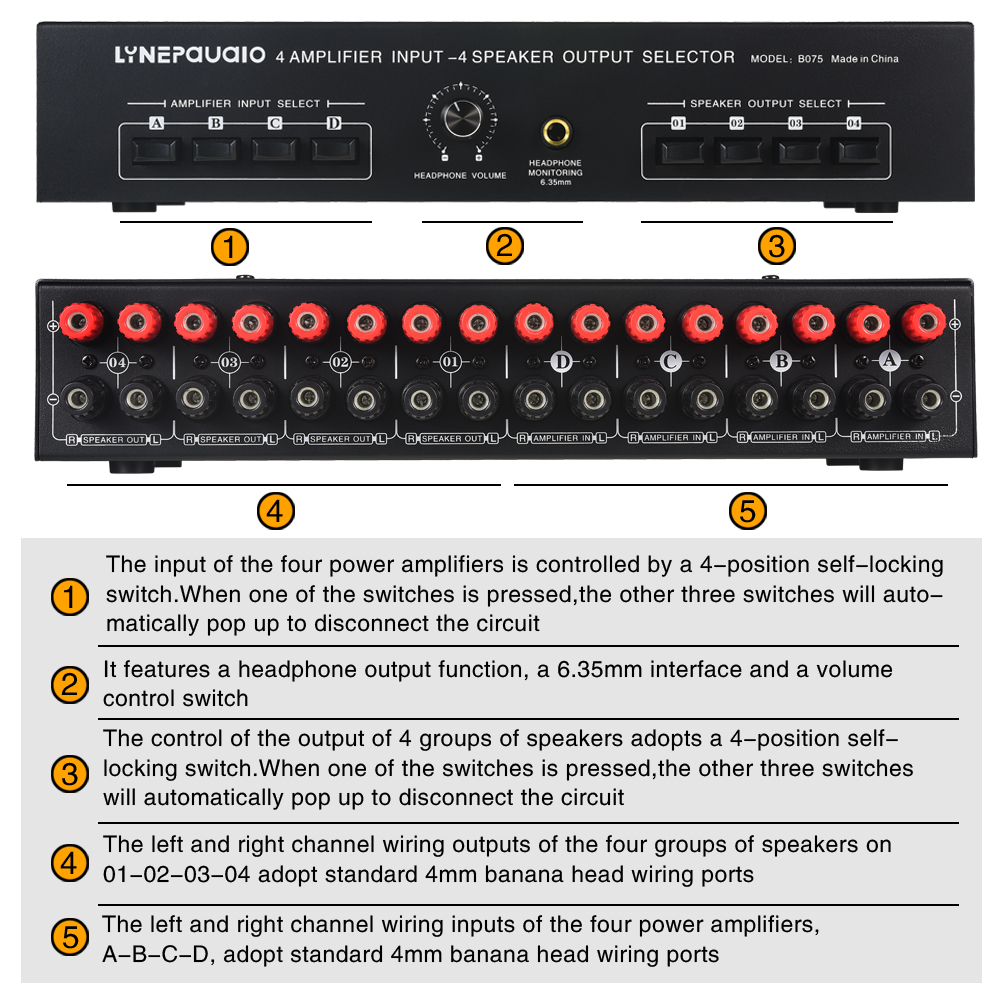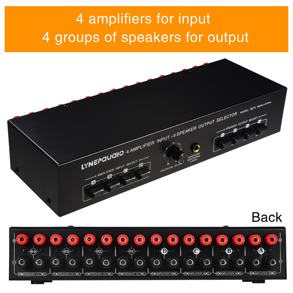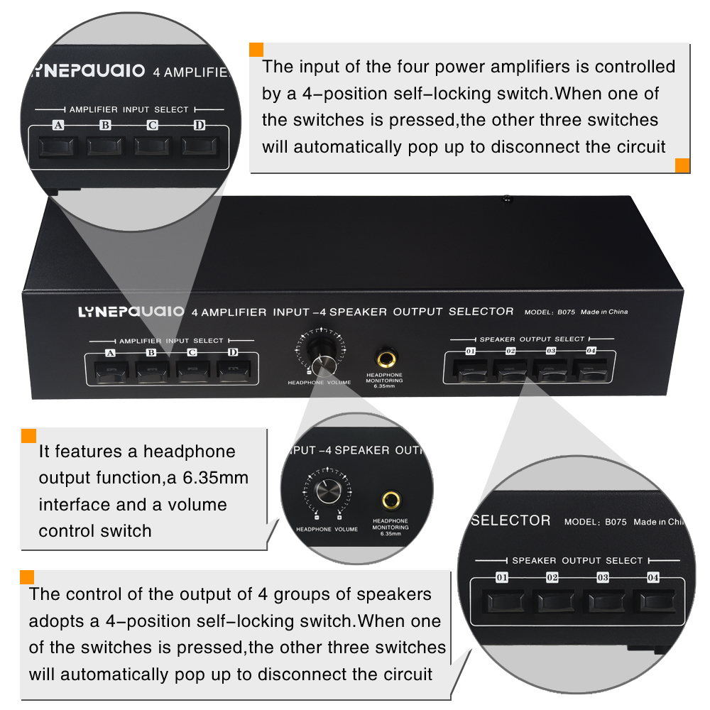 B075 4-IN 4-OUT Power Amplifier Speaker Switcher 300W Lossless Speaker Switch Distributor