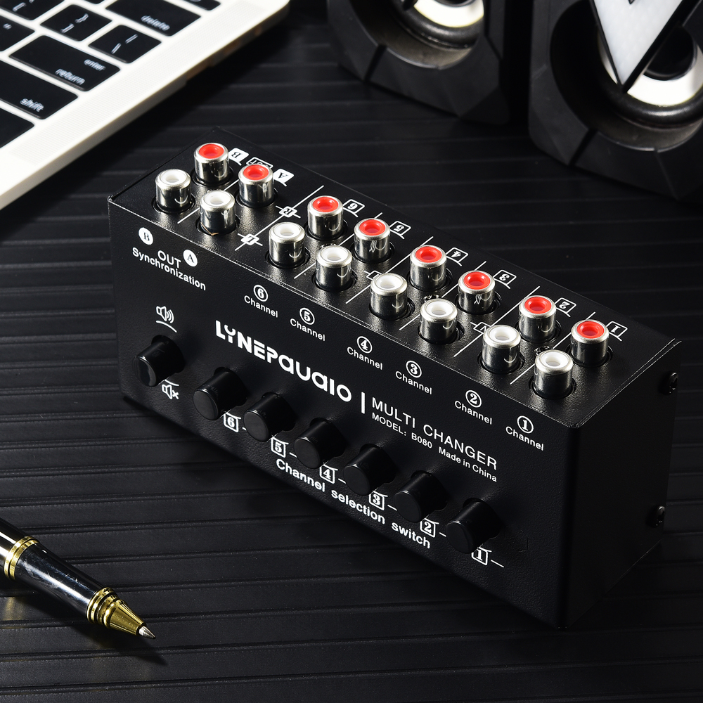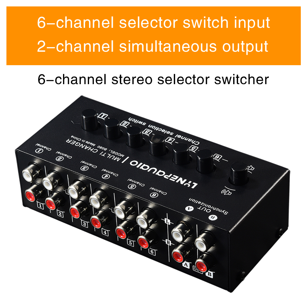 B080 6-IN 2-OUT Audio Switcher RCA Stereo Signal Source Selection Switcher Plug and Play L/R Simultaneous Switch