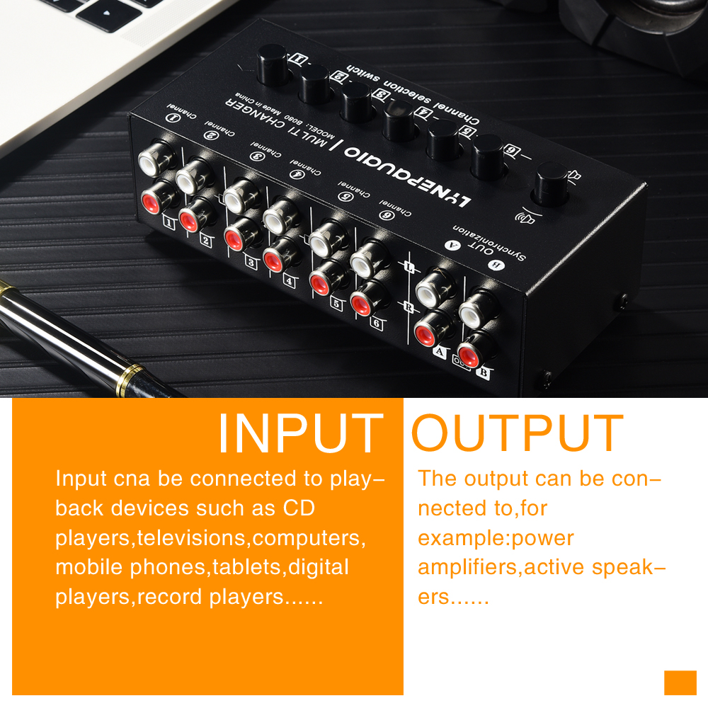 - It is mainly used to select and switch various stereo signal inputs and share the output of one or more sets of devices, such as multiple stereo signal sources (TV audio, MP3).