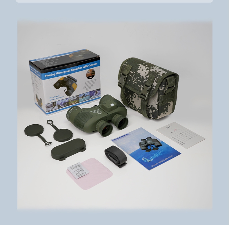 Black 10x50 Navigation LED Compass Binocular Waterproof and Antifog ED Telescope 10X IR Rangefinder Binocular