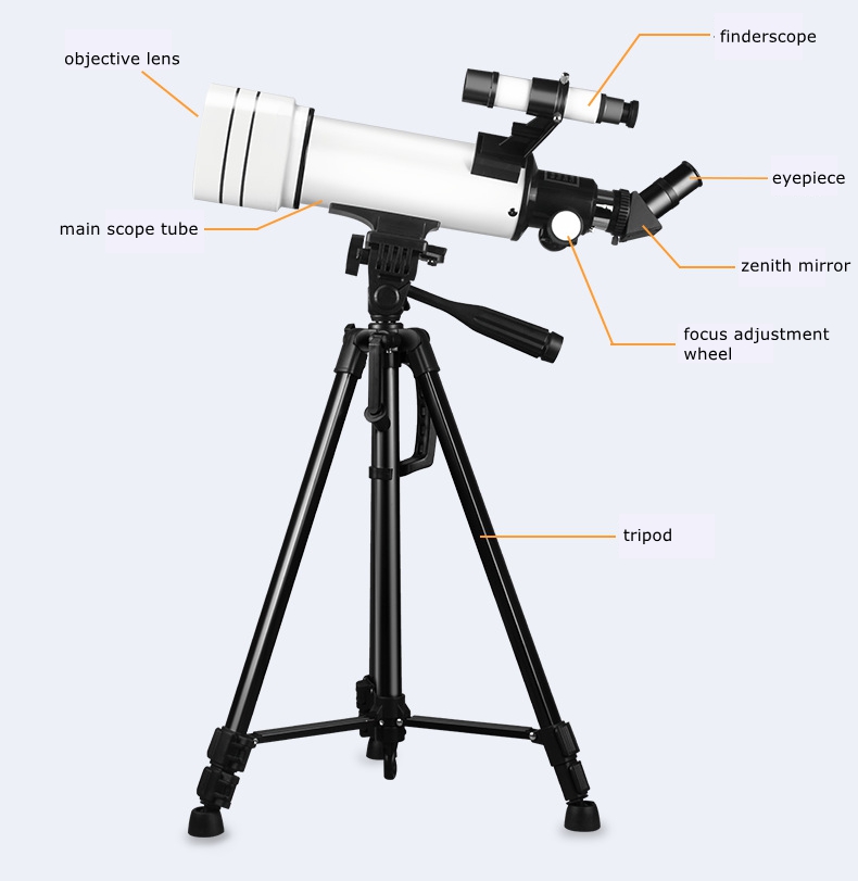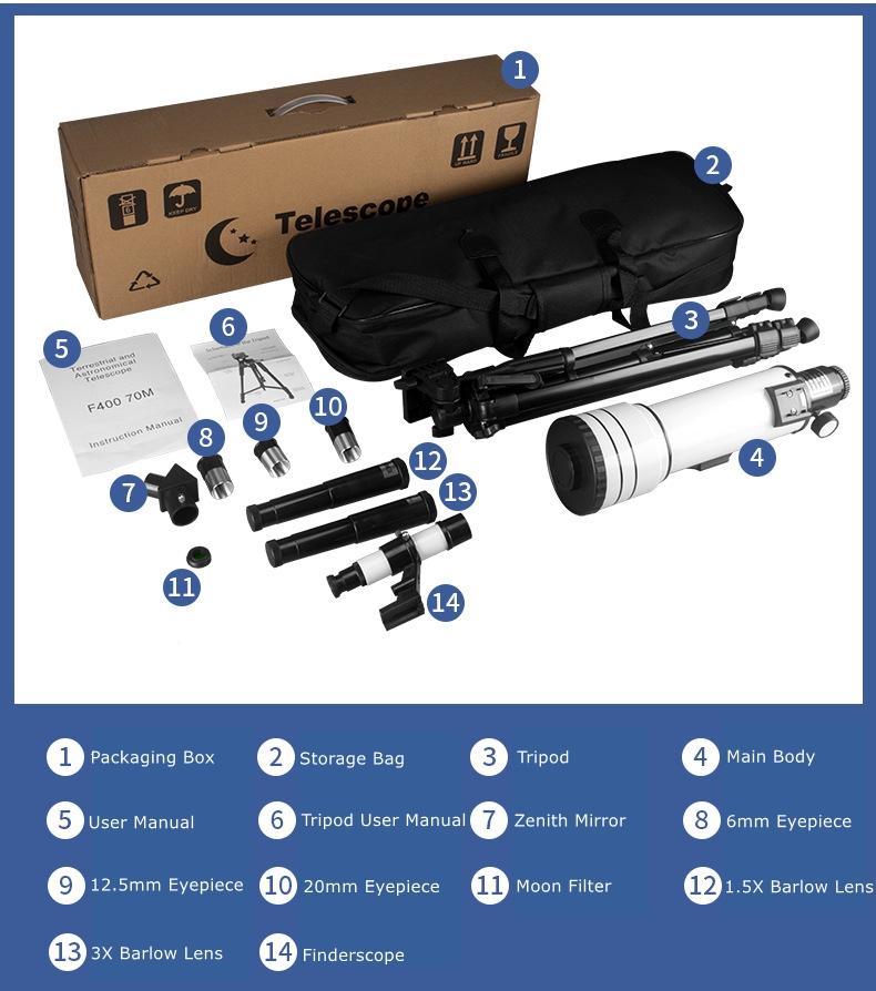 White 40070 Astronomical Telescope 70mm Aperture 16X-40X Magnification Finderscope with 1.5X/3X Barlow Lens