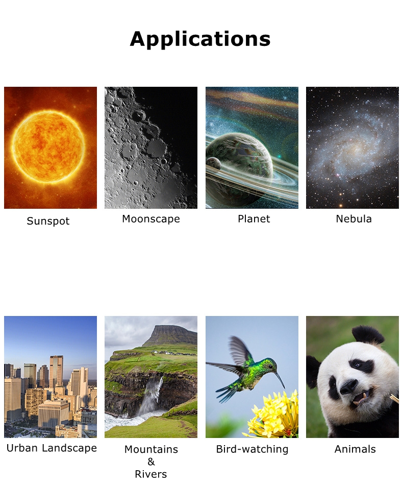 - Do not directly use naked eyes or look directly at the sun through astronomical telescopes, as this may cause permanent damage to your eyes. Observing the sun requires an AstroSolar (not included).