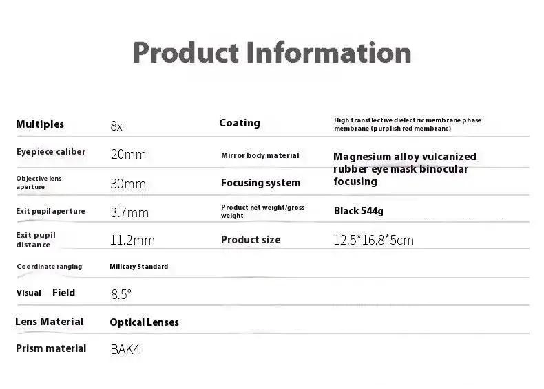 - Magnification: 8X