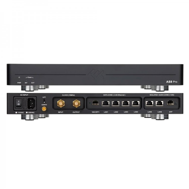 - The AS8 Pro is divided into three main parts. 2.5G main switch + 1G audio isolation zone + ultra-low phase noise precision clock. All in one design, fully functional trinity and independent isolation from each other.