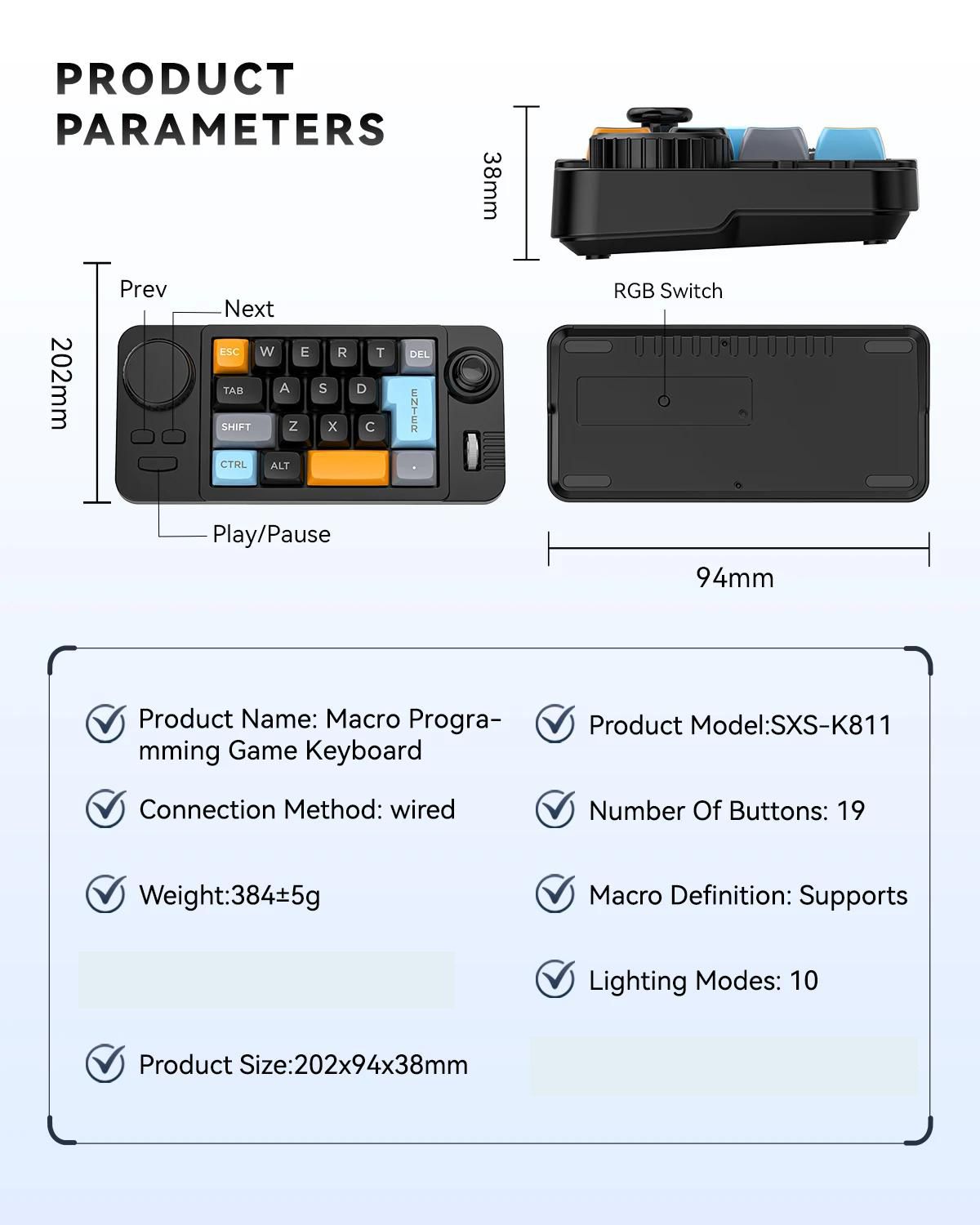 - This device is onboard storage, and the device's settings information and macro data are saved inside the device. There is no need to open software during use. Replacing the computer does not require setting up and can still be used (some functions are not onboard: opening website addresses, sending text, opening programs, etc.)