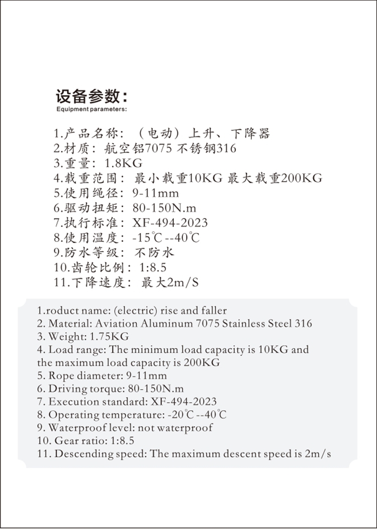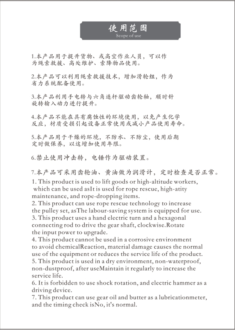 - SU-7 is an efficient electric lift powered by manual rotation, utilizing a gearbox for variable speed and friction driven rope wheel joint nodes. Commonly used for high-altitude auxiliary tools, lifting people and objects. During use, secondary protective measures need to be added, and the driving device can also be removed.