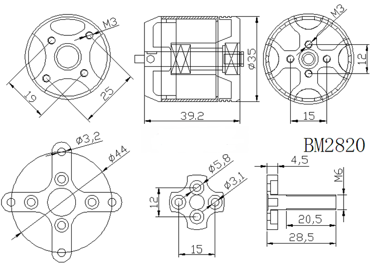 BM2820 (3542) 920KV 570W 38A Brushless Motor for FPV Fixed Wing Multicopter 12N14P