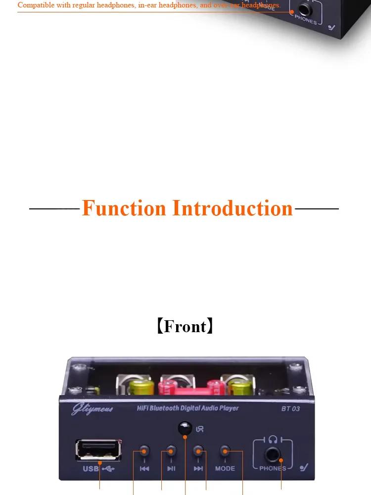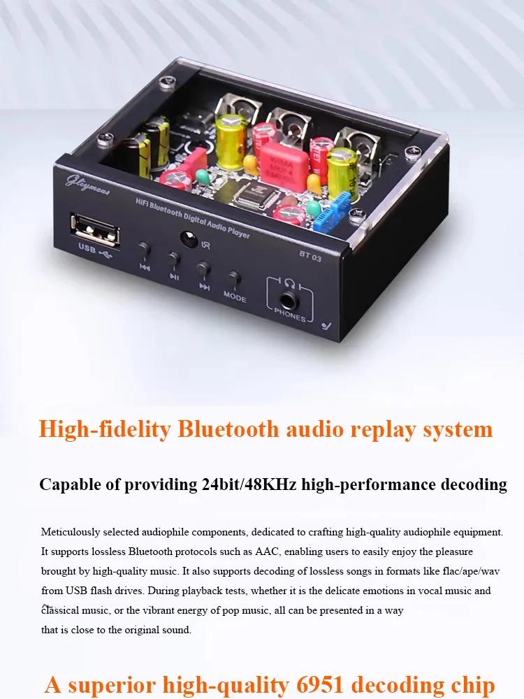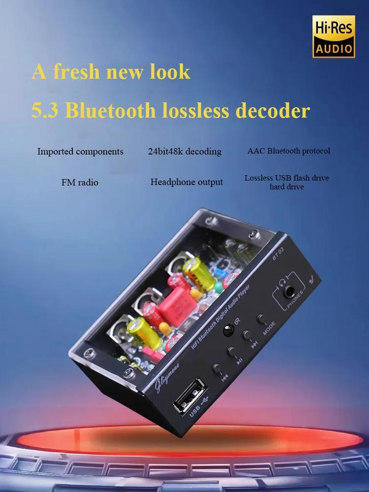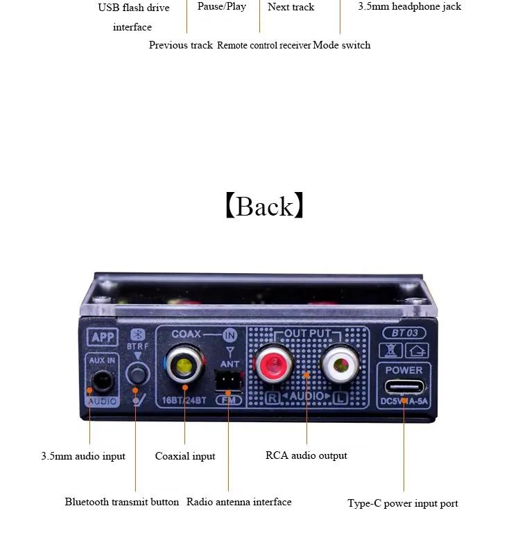 BT03 HiFi Bluetooth5.3 Player 87-108MHz Stereo High Sensitivity FM Receiving Lossless USB Flash Drive Coaxial Decoder