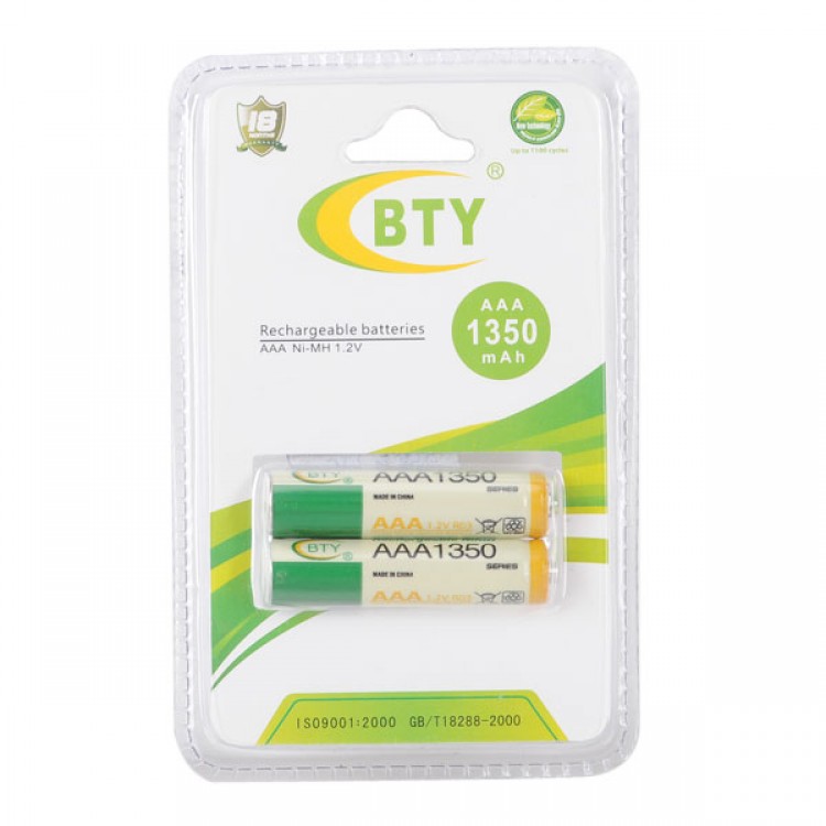 BTY 1350mAh AAA Ni-MH Rechargeable Batteries 2-Pack