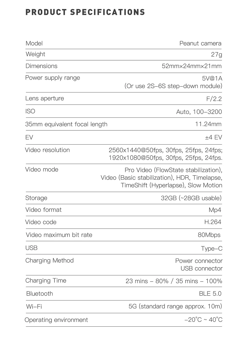Caddx Peanut Action Camera 1440P 50FPS 30 Minutes FPV Camera for FPV Drone Racing Drone