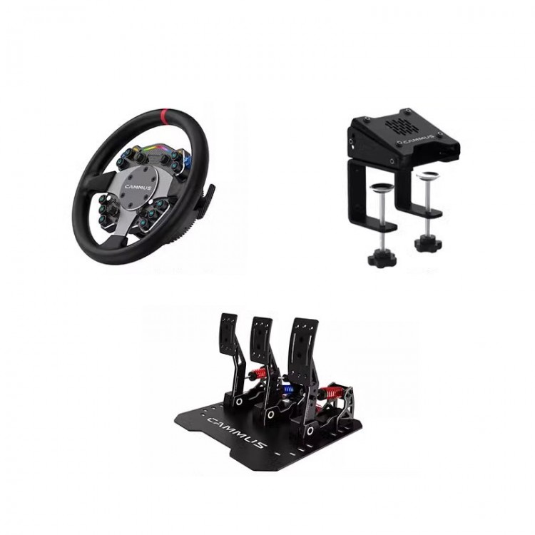 CAMMUS C12 300mm/11.8" Direct Drive Steering Wheel Gaming Wheel + CS5 Desk Clamp + LC100 3 Pedal Set