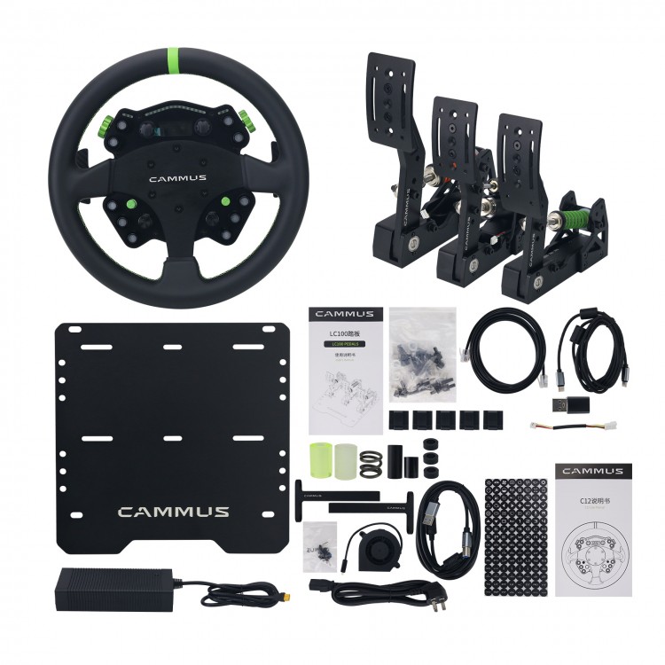 CAMMUS C12 300mm/11.8" Direct Drive Steering Wheel Gaming Wheel Simulator with LC100 3 Pedal Set