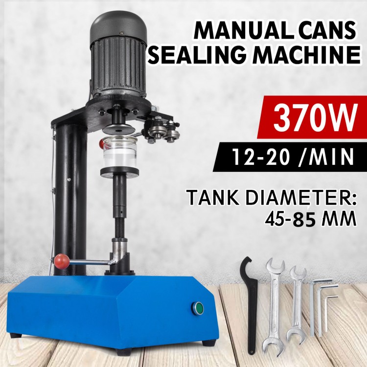 - This Brand New Tin Cans Sealing Machine is suitable for various kinds of iron, plastic, glass, paper cans of circular container sealing, reliable quality, has the characteristics of simple operation, quick action, which is the ideal equipment for food, beverage and other industries essential.