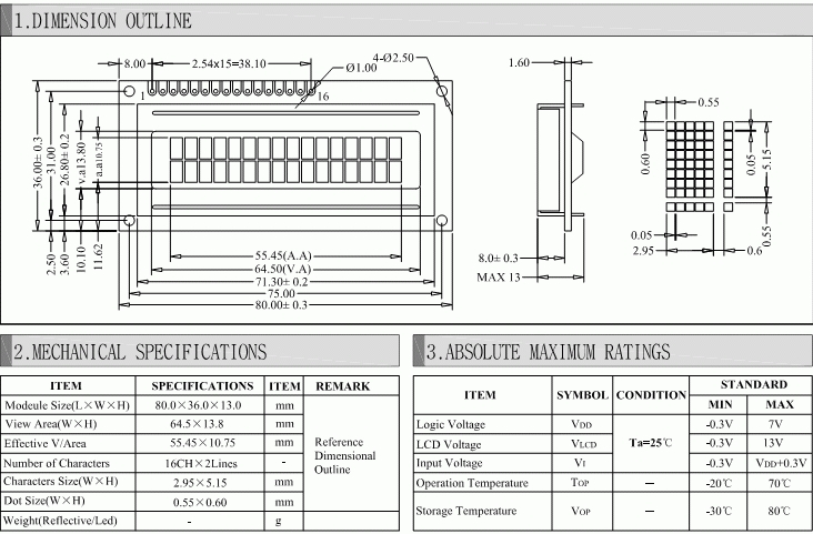 | Show: | 16 Character x 2 lines 62.0×18.0 mm |