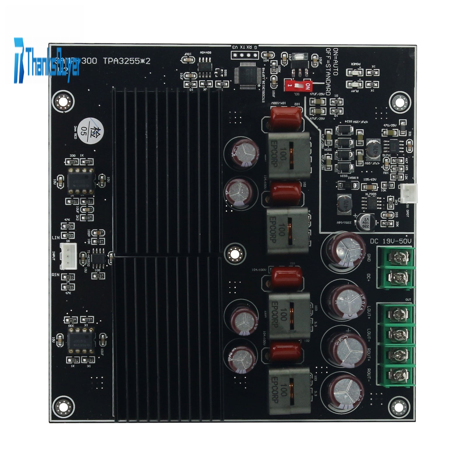 - Automatic energy-saving mode: If there is no music output from the amplifier board for more than 1 minute, the board enters standby mode, and the static power consumption is reduced to one tenth of the original.