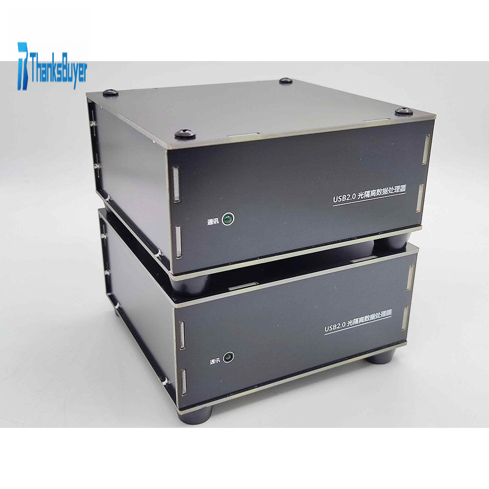 The USB Data Isolation Processor employs an optical fiber transmission isolation method. A set includes Machine A and Machine B. Machines A and B are connected via professional LC glass optical fibers (included), and data packets are transmitted through the fibers by specialized transceivers after serial-to-parallel processing, with no delay.