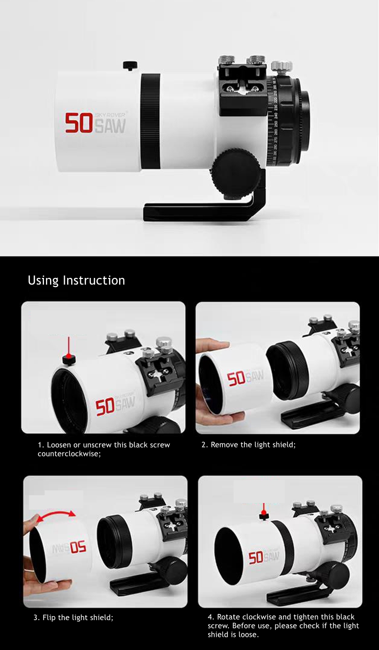 - 50SAW adopts a reverse buckle light shield, which can be quickly installed and used.