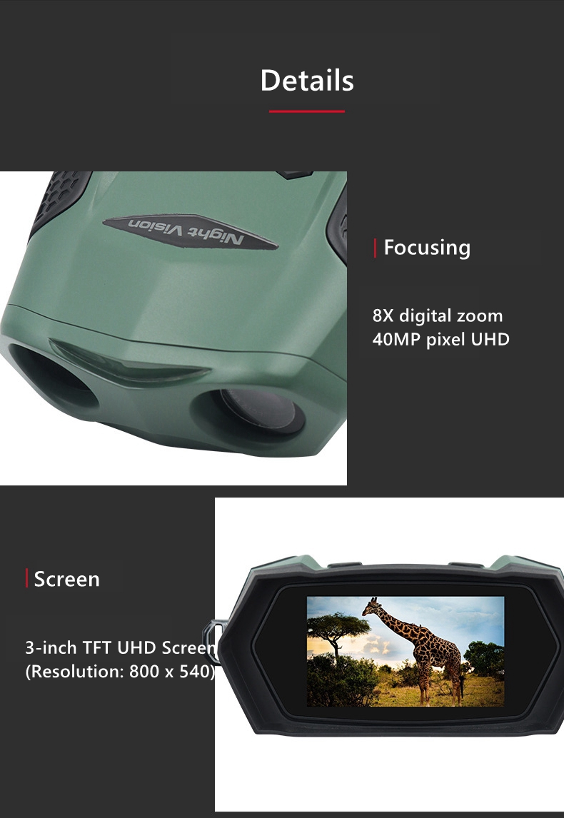 - Display screen: 3-inch TFT UHD screen (resolution: 800 x 540)