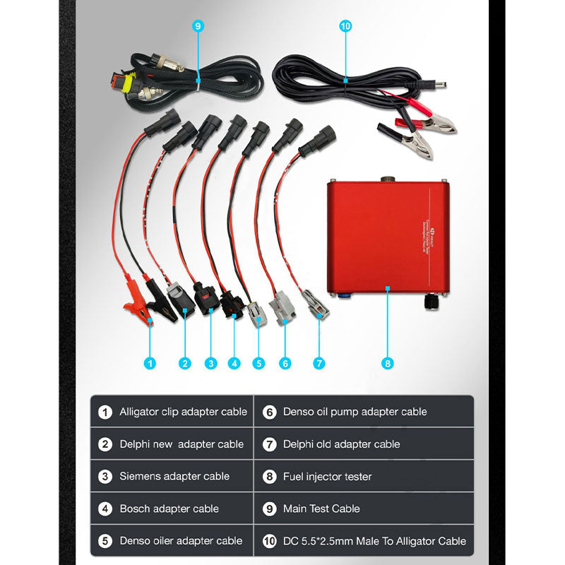 - It can test various types of fuel injectors for BOSCH, DENSO, DELPHI, PIEZO, CAT, etc. (except for Toyota 1KD and 2KD), and supports for Siemens pieso fuel injectors.
