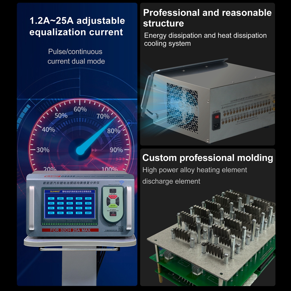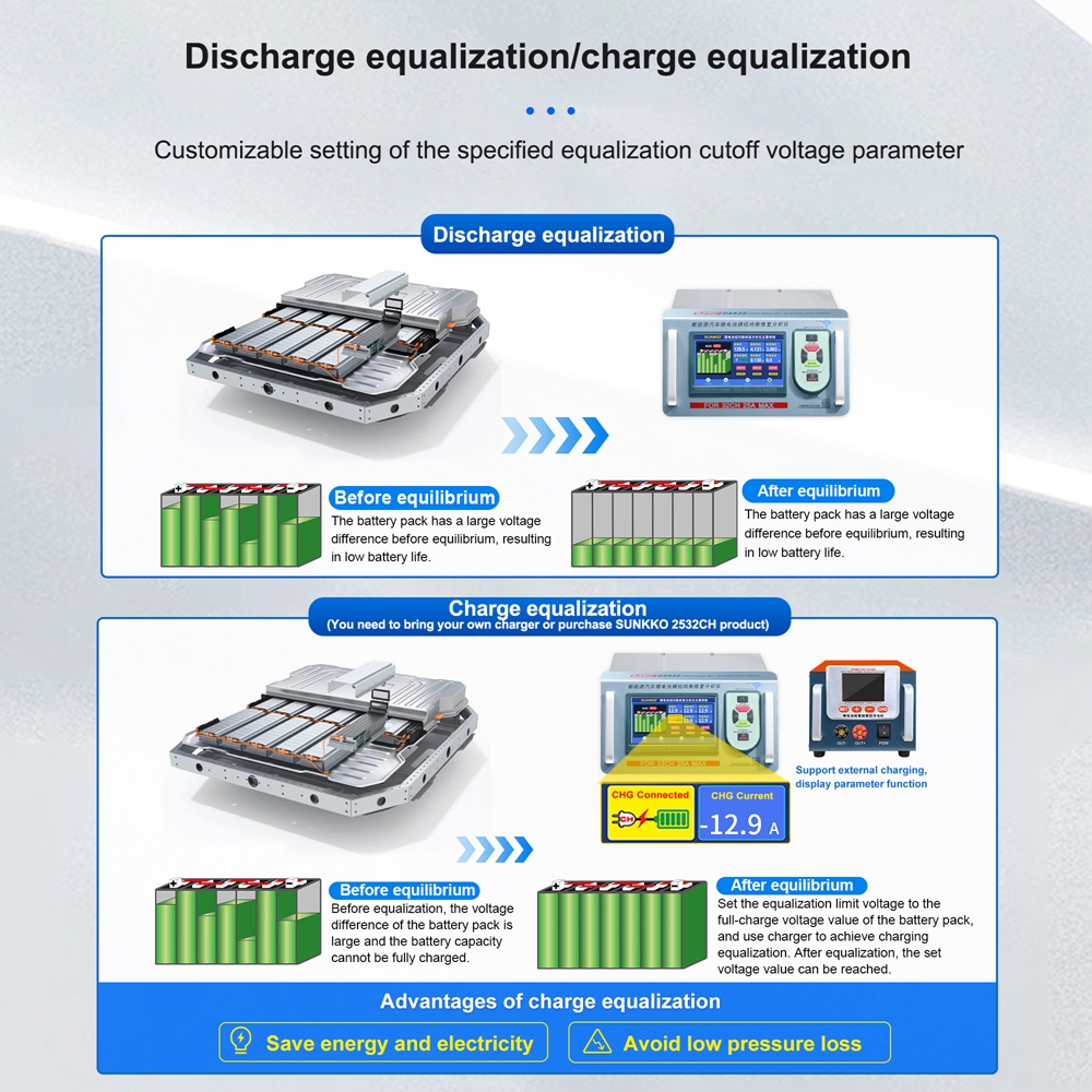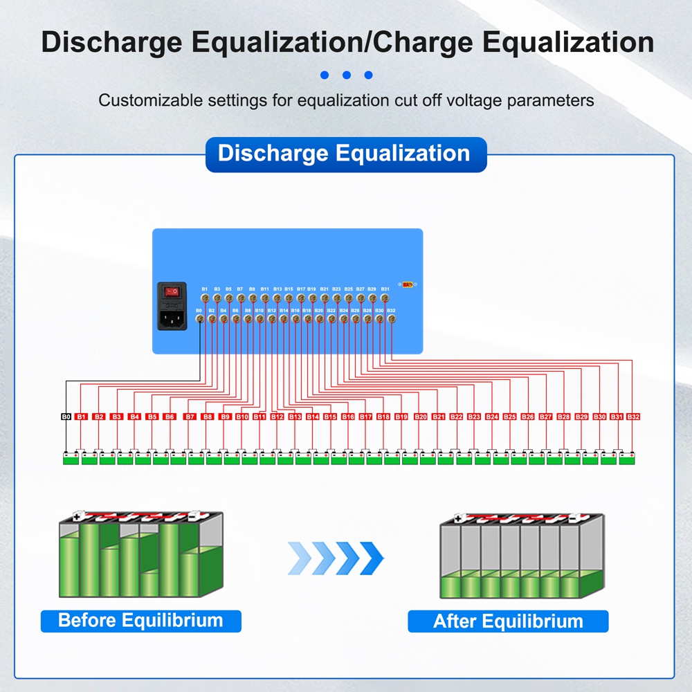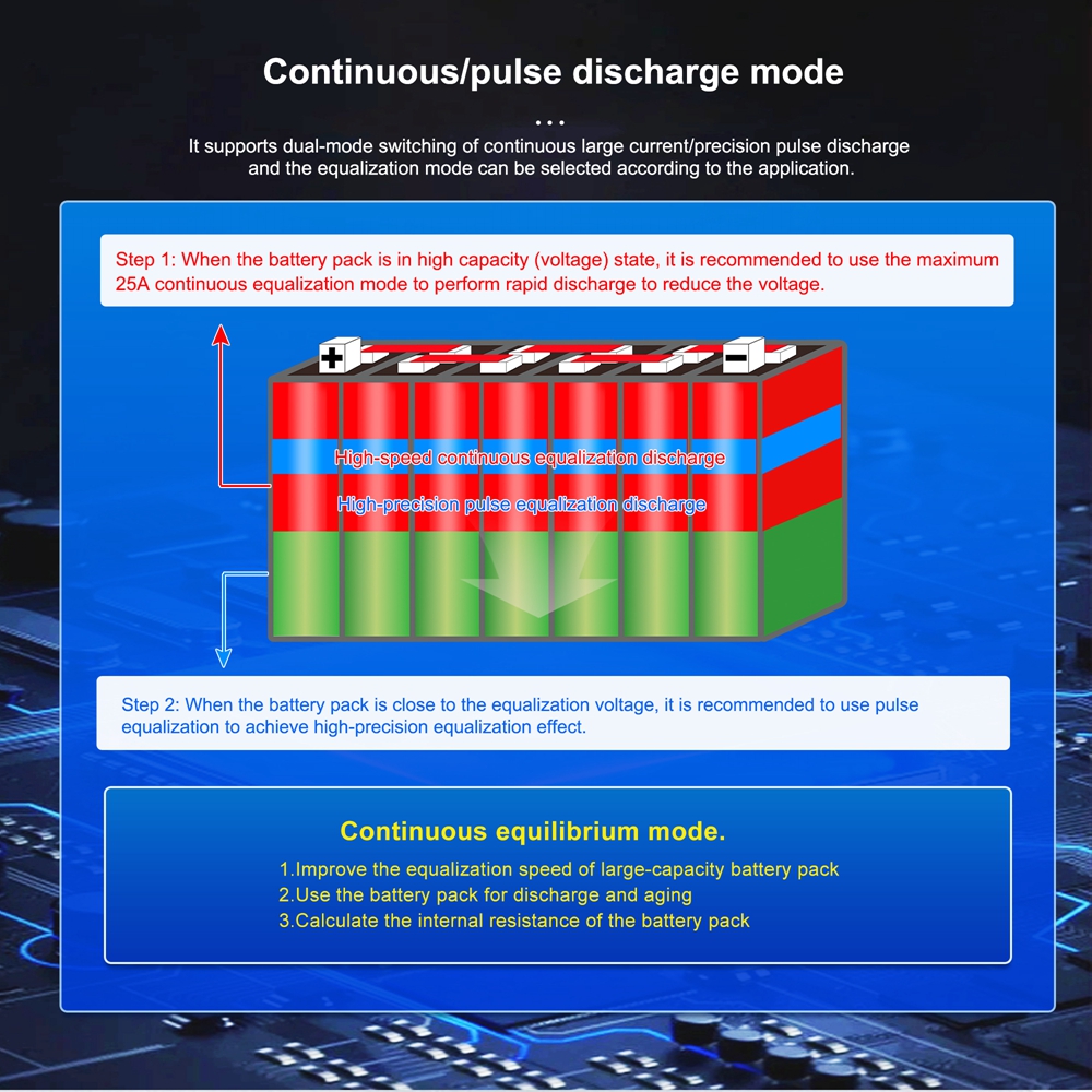 - Pulse current and continuous current dual mode discharge equalization.