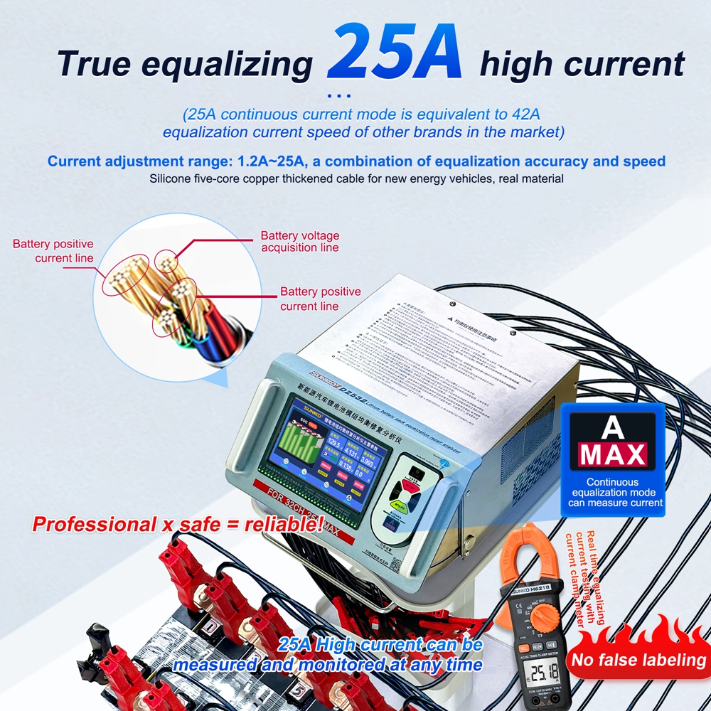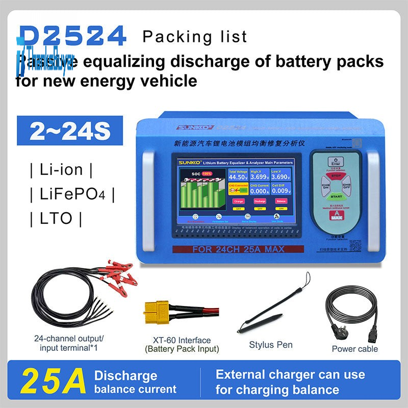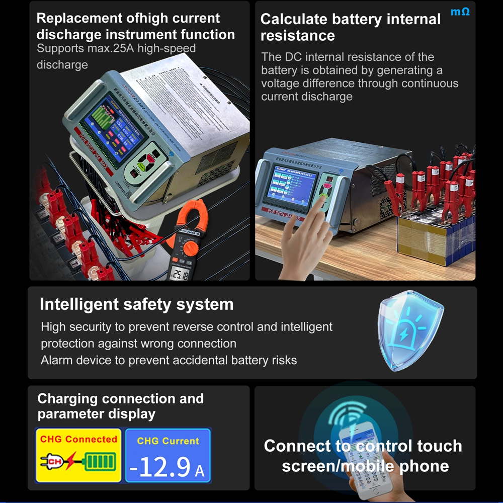 - Pulse discharge current: 0-25A (adjustable)