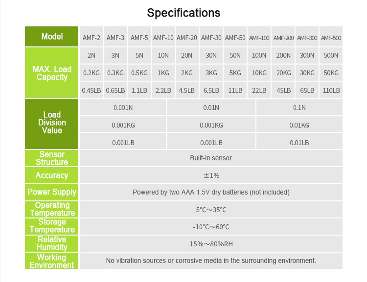 * Optional models: 2N, 3N, 5N, 10N, 20N, 30N, 50N, 100N, 200N, 300N, and 500N. Please specify the desired force range when placing your order. Thank you!