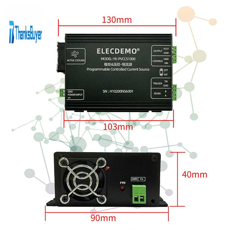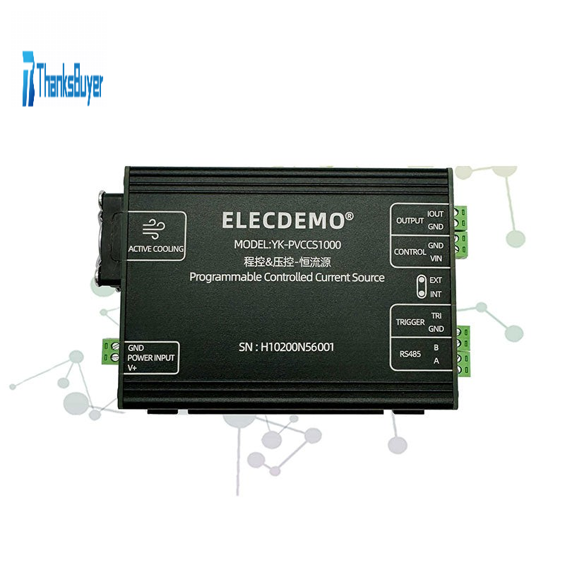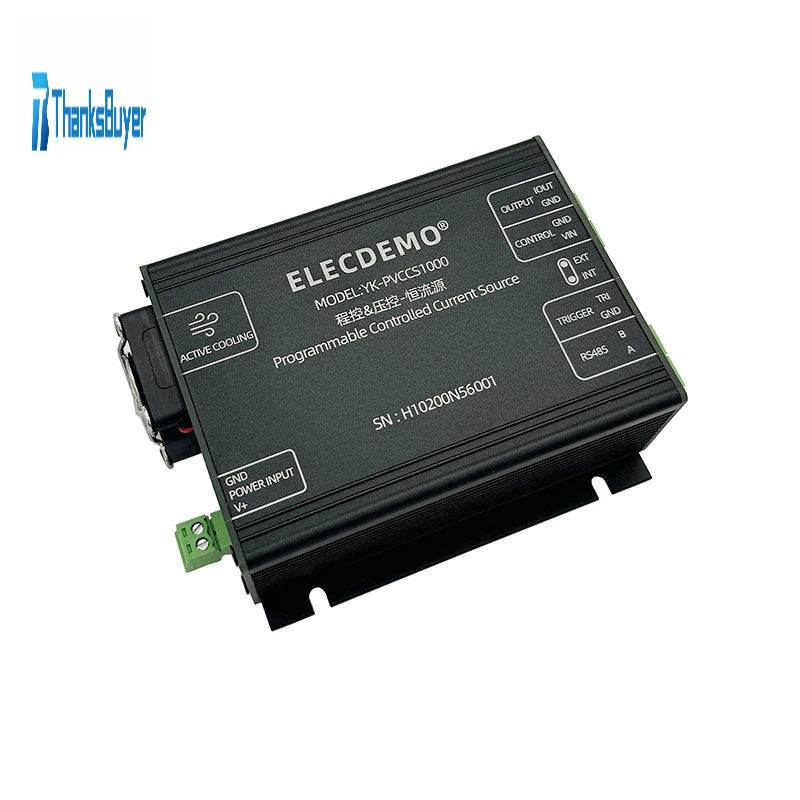 - YK-PVCCS1000 is a programmable and voltage controlled constant current source with an output range of 0~1000mA. It supports voltage input of 0-5V to control output current, or uses for Modbus RTU protocol through RS485 interface to control current output. This device provides a trigger interface that can be used to switch output current or synchronize with other devices. In addition, it adopts an active fan cooling design, effectively reducing the impact of temperature drift. YK-PVCCS1000 has a wide range of power supply voltages and clear interface design, allowing users to easily integrate it into their own systems. This device is suitable for various application scenarios, including constant current driving of lasers, LEDs, and LDs, constant current driving of sensors, driving of solenoid valves, and providing excitation signals.