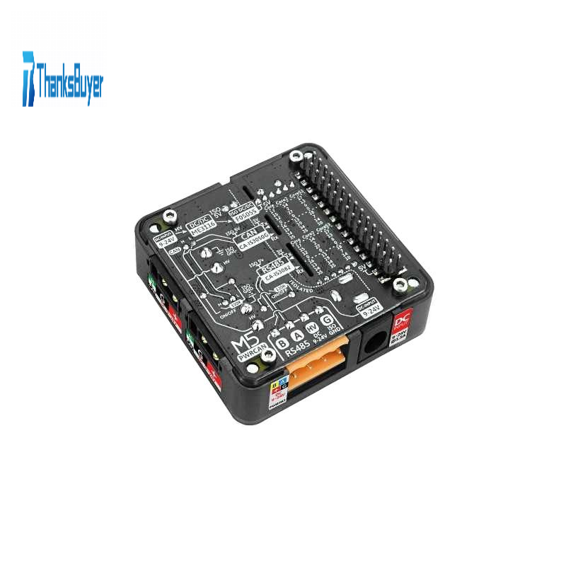 - PwrCAN Module 13.2 is a multifunctional module designed for the PwrCAN bus, integrating isolated CAN communication and DC 9-24V power bus. The module also includes Pwr485 (with isolation) bus functionality and can provide isolated 5V power supply to the M5 host. The CAN communication part uses the CA-IS3050G isolated transceiver, and the RS485 part uses the CA-IS3082W isolated transceiver. The GPIOs related to CAN and RS485 communication can be selected through dip switches, and the 120-ohm terminal resistance at the CAN and RS485 outputs can also be selected through dip switches. The module's power bus supports DC 9-24V wide voltage input, with the DC socket directly connected to the HT3.96 and XT30 power parts. The built-in isolated power module F0505S-2WR3 provides power to the M5 host. This module is suitable for fields such as robot control, protocol conversion, industrial automation, automotive communication systems, intelligent transportation, and building automation.