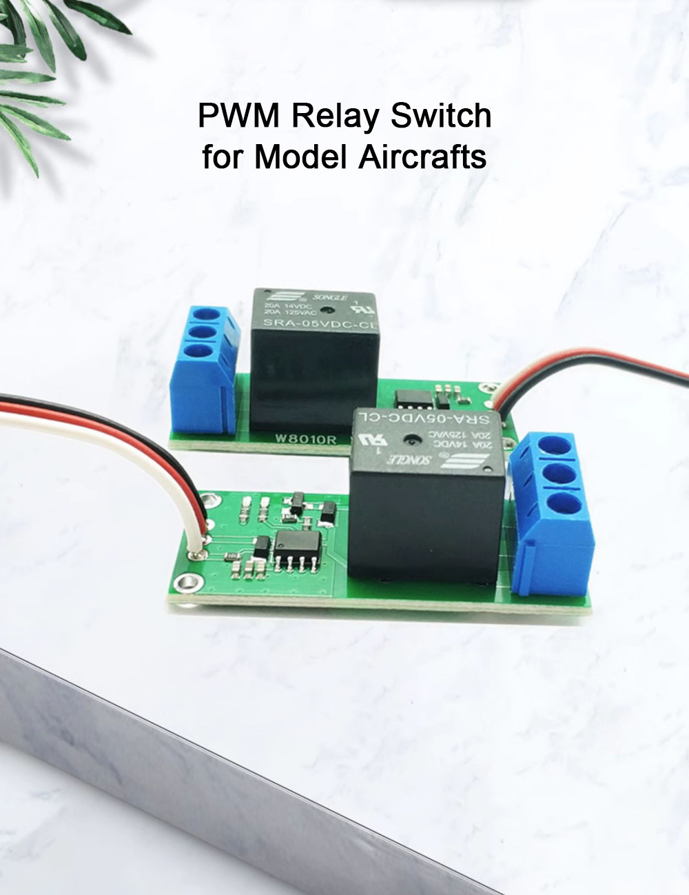 Answer: This is a problem with the remote control settings and has nothing to do with the relay. Our relay only needs to turn on/off the channel, and the aircraft model PWM signal is enough.