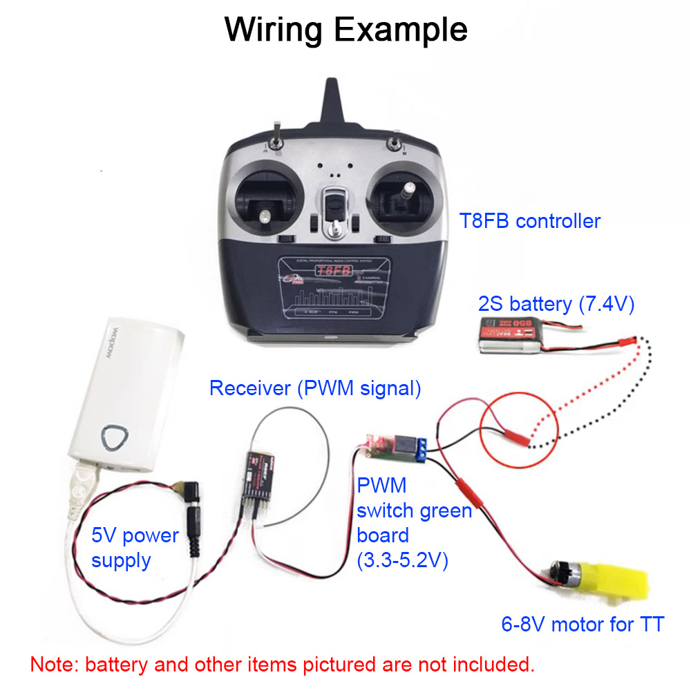 * The green board only supports a 5V receiver, otherwise it may be damaged. If the receiver and servo use high voltage system, a step-down module should be added to the module.
