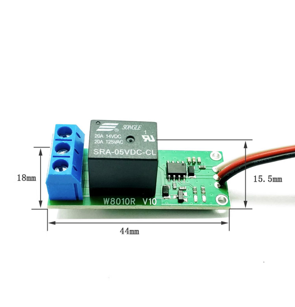 Answer: Yes, the relay modules have different power supply voltages. A relay module is powered by a receiver, and the receiver also needs power supply. Users who use a 5V receiver should buy a green board. Users who use a 5.2V-12V receiver should buy a black board. Your device is powered separately, up to 110V, with a maximum power of no more than 280W and a current of no more than 20A.