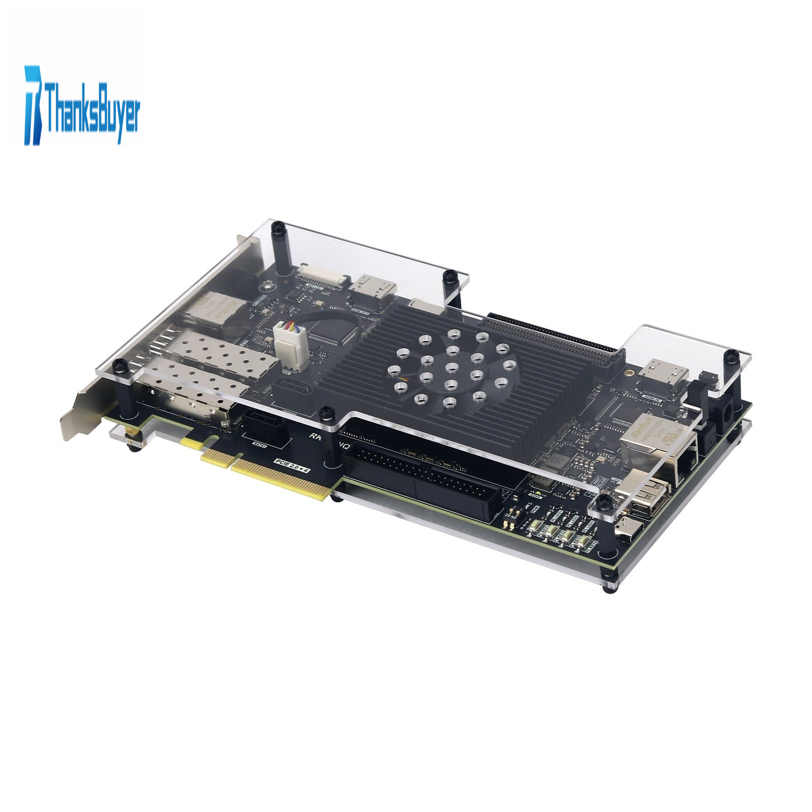 - The expanded interfaces include: two SFP+, two SATA, one PS ETH, one PLETH, onboard JTAG+UART 2-in-1, one four wire adjustable fan, one EEPROM, one MIPI, one HDMI-compatible input, one HDMI-compatible output, one SD CARD, one FMC HPC interface, one USB 2.0 HOST/SLAVE, six PL LEDs, four PL KEYs, one 40PIN IO interface, and one PCIE2.0 x4 interface.