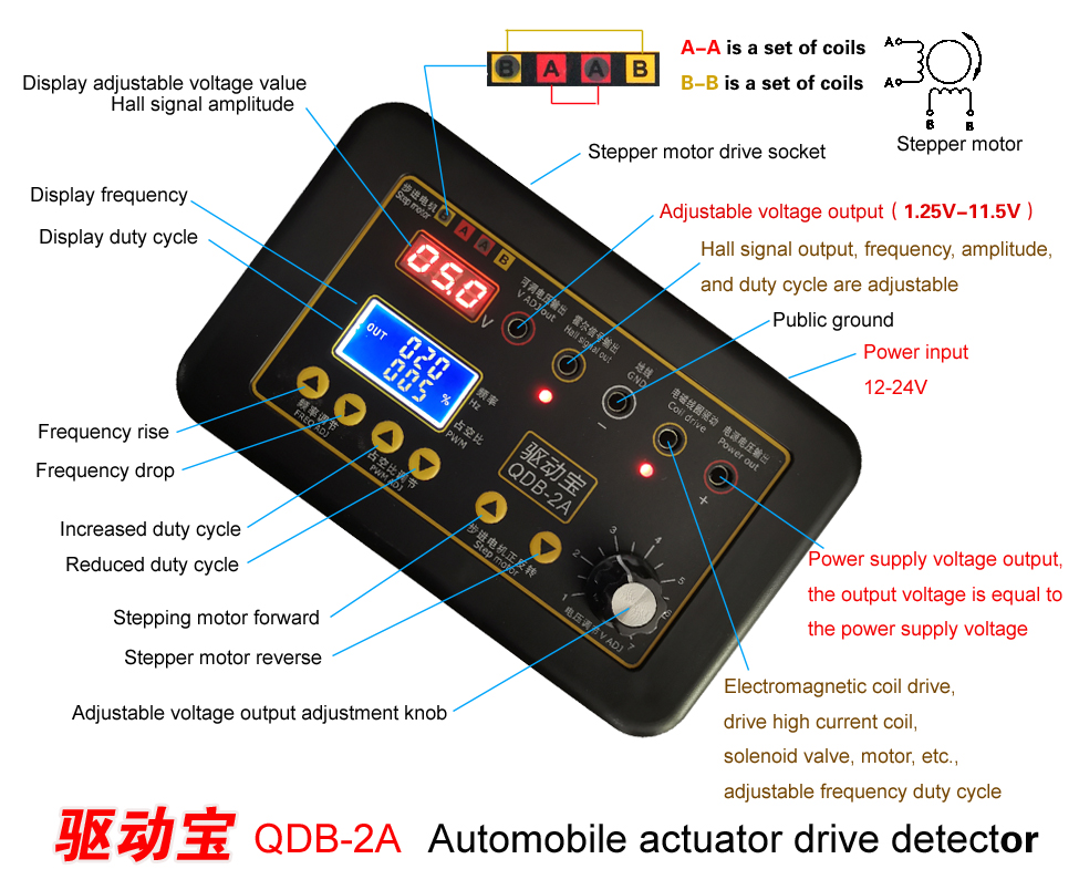 QDB-2A Car Actuator Fault Detector for Ignition Coil Injector Solenoid Valve Idling Stepper Motor