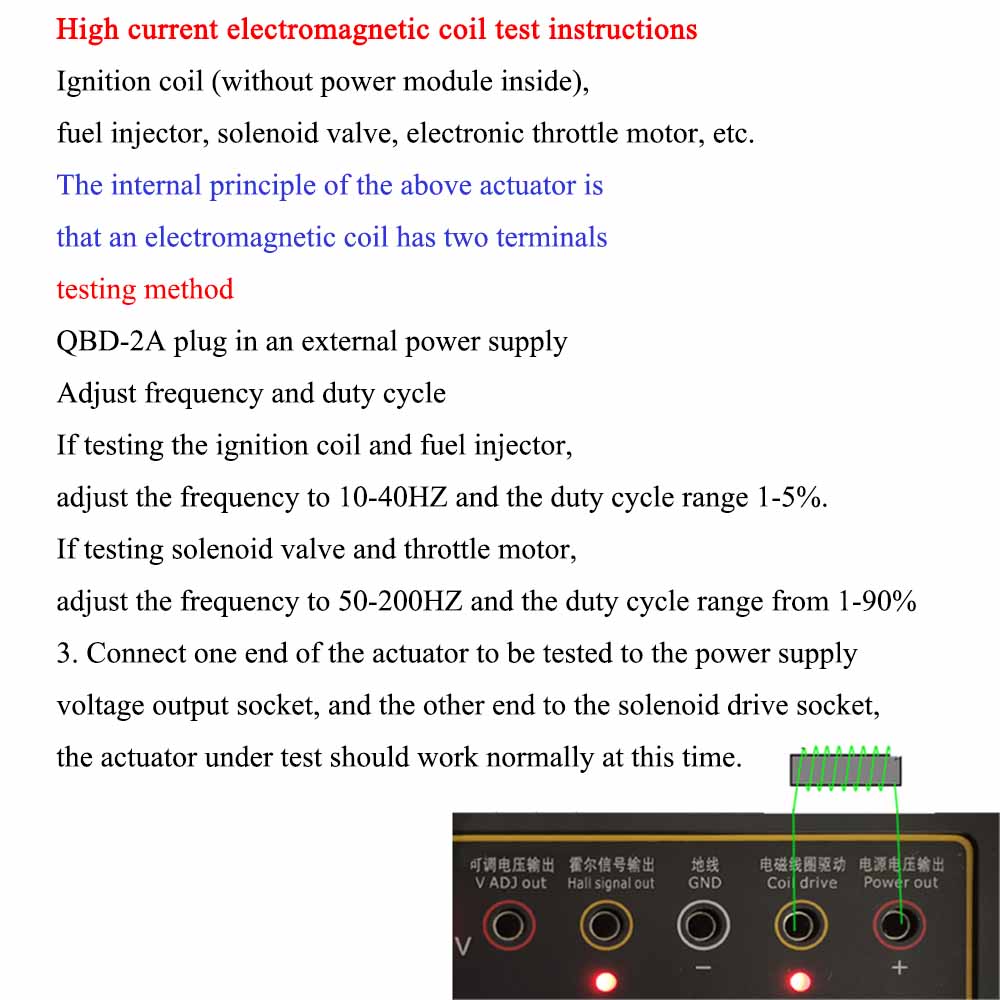 2. Drive test injectors: 12V gasoline injectors, 12V-24V diesel injectors