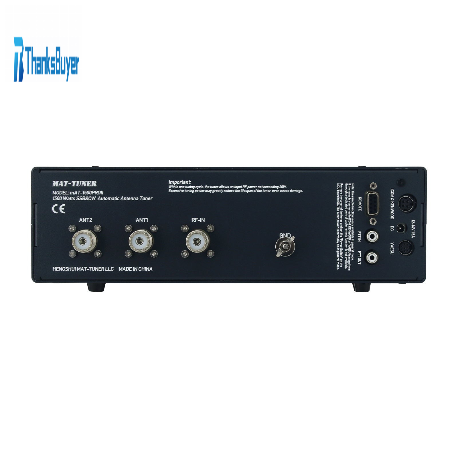 - The mAT-1500ProII is a multipurpose high-power automatic antenna tuner that can match almost all transmitters and linear amplifiers. The maximum RF power allowed is 1500 watts (SSB), the frequency range allowed is 1.8-30MHz, and two antennas can be connected at the same time. According to the different connected transmitters, the tuner has three modes, YAESU, ICOM and GENERAL. The tuner can automatically determine and match the type of the connected transmitters to minimize the manual operation.