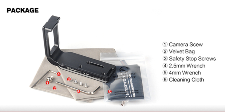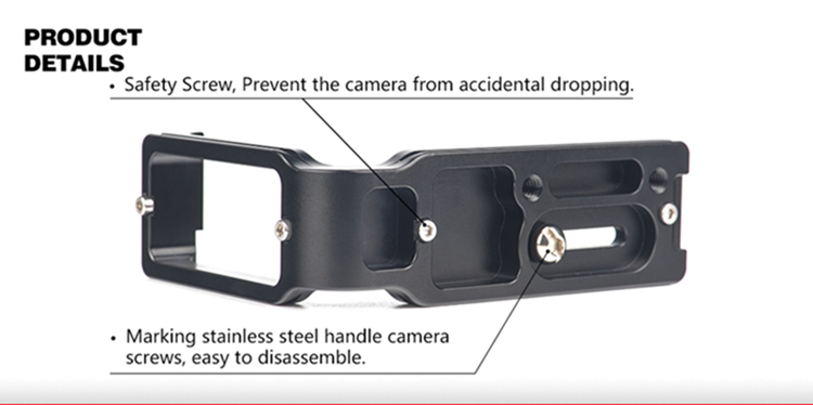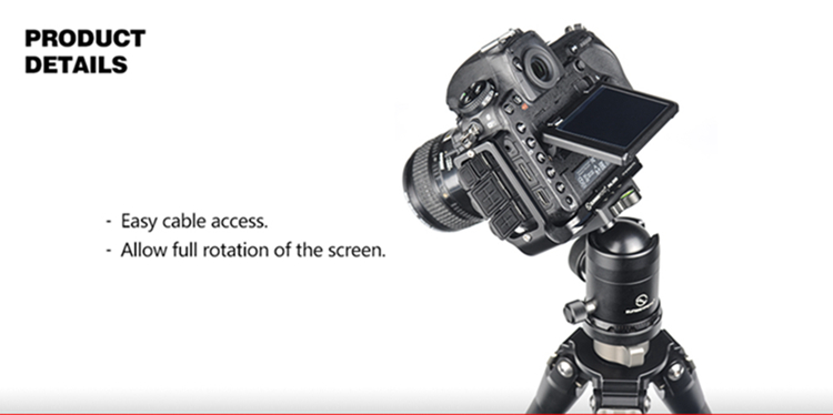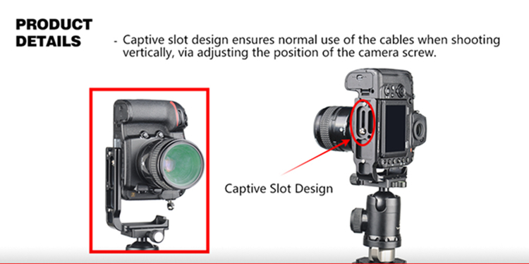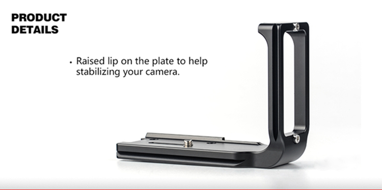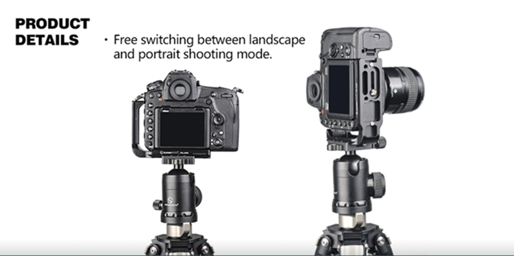 Using L bracket can maximize the stability and efficiency of using the camera on the ball head when switching the horizontal and vertical composition. Can completely eliminates the common gross positioning shifts in changing the horizontal composition to vertical composition, and the depth of the scenes catching in horizontal aspect will not be effected when changing the composition.