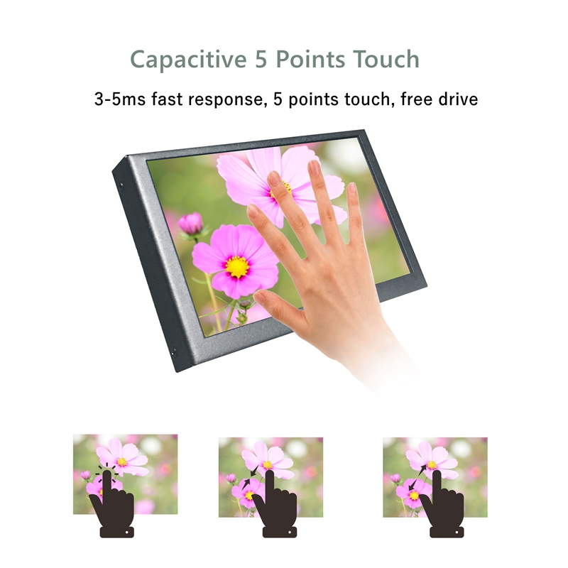 Portable 5-Point Touch Screen Monitor 5-inch 800 x 400 HD IPS Monitor USB Mini LCD Display DC 5V/2A